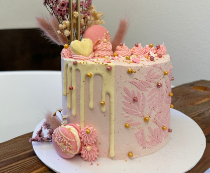 Nach einigen Fortbildungen weiß sie haargenau, worauf es ankommt und zeigt ihren KursteilnehmerInnen, wie sie aus Biscuit, Swiss Meringue Buttercreme und unterschiedlichen Schablonen wunderschöne Torten kreieren können. Und weil Macarons als i-Tüpfelchen bei der Dekoration nicht fehlen dürfen, zeigt Simone obendrein, wie das beim Backen so empfindliche Gebäck gelingt.