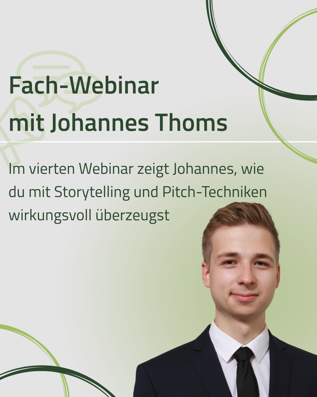 In diesem Webinar dreht sich alles um wirkungsvolles Storytelling und überzeugende Kommunikation. Die Teilnehmenden lernen Storytelling-Methoden wie den Golden Circle und die ABT-Methode kennen und wenden diese direkt an, um einen eigenen Pitch zu entwickeln.
