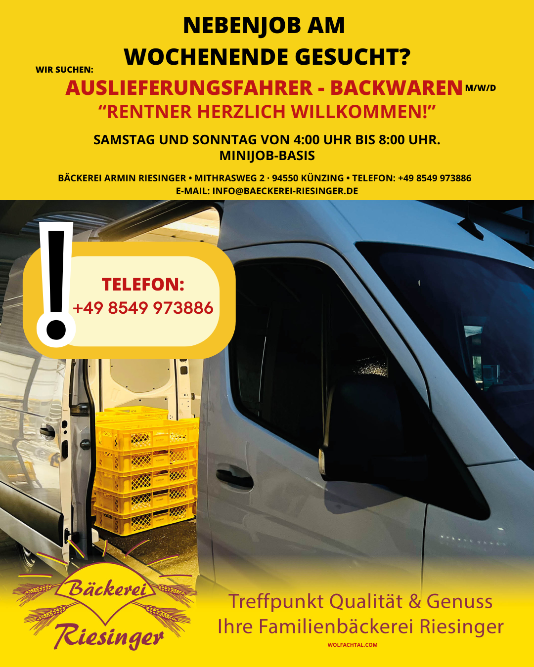 "AUSLIEFERUNGSFAHRER/IN für unsere BACKWAREN" auf Minijobbasis