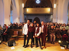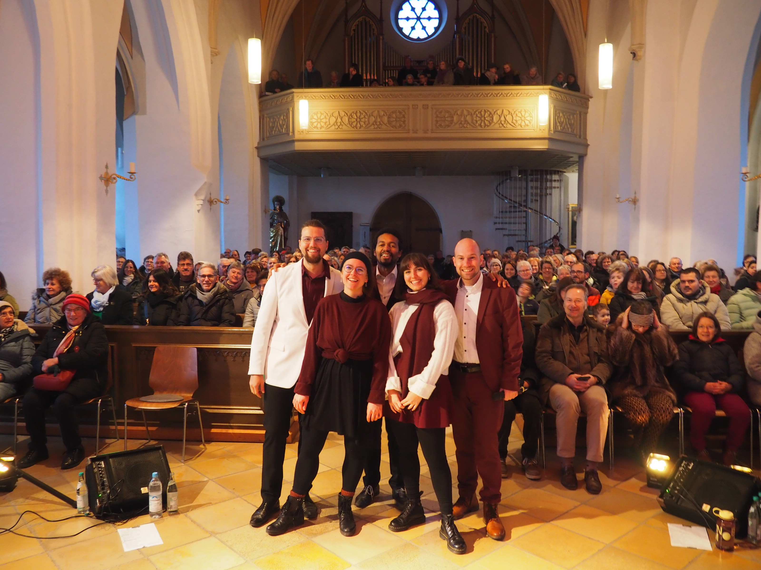 Schon im letzten Jahr begeisterte die a cappella Band "B'n'T" aus Regensburg das Publikum mit ihrem Konzert "Zeit der Besinnlichkeit" in der Pfarrkirche Marklkofen. Auch in diesem Jahr hat der Katholische Frauenbund die Band wieder für ein Konzert bei freiem Eintritt in die Pfarrkirche geladen. Nur mit ihren herrlichen Stimmen wollen die fünf Sängerinnen und Sänger am Samstag, 6. Dezember 2025, um 20 Uhr, die Zuhörer in der Kirche begeistern und zur Ruhe kommen lassen. Im Gepäck haben sie besinnliche, aber auch schwungvolle adventliche Lieder, die sie nach eigenen Arrangements vorstellen. Dabei sind wie im letzten Jahr die zwei ehemaligen Domspatzen Simon und Tino, die auch als Solokünstlerin bekannte Ronja, die Amerikanerin Brooklyn und der französische Beatboxer Moy. Beim Ausgang wird um eine Spende zur Deckung der Unkosten gebeten.
