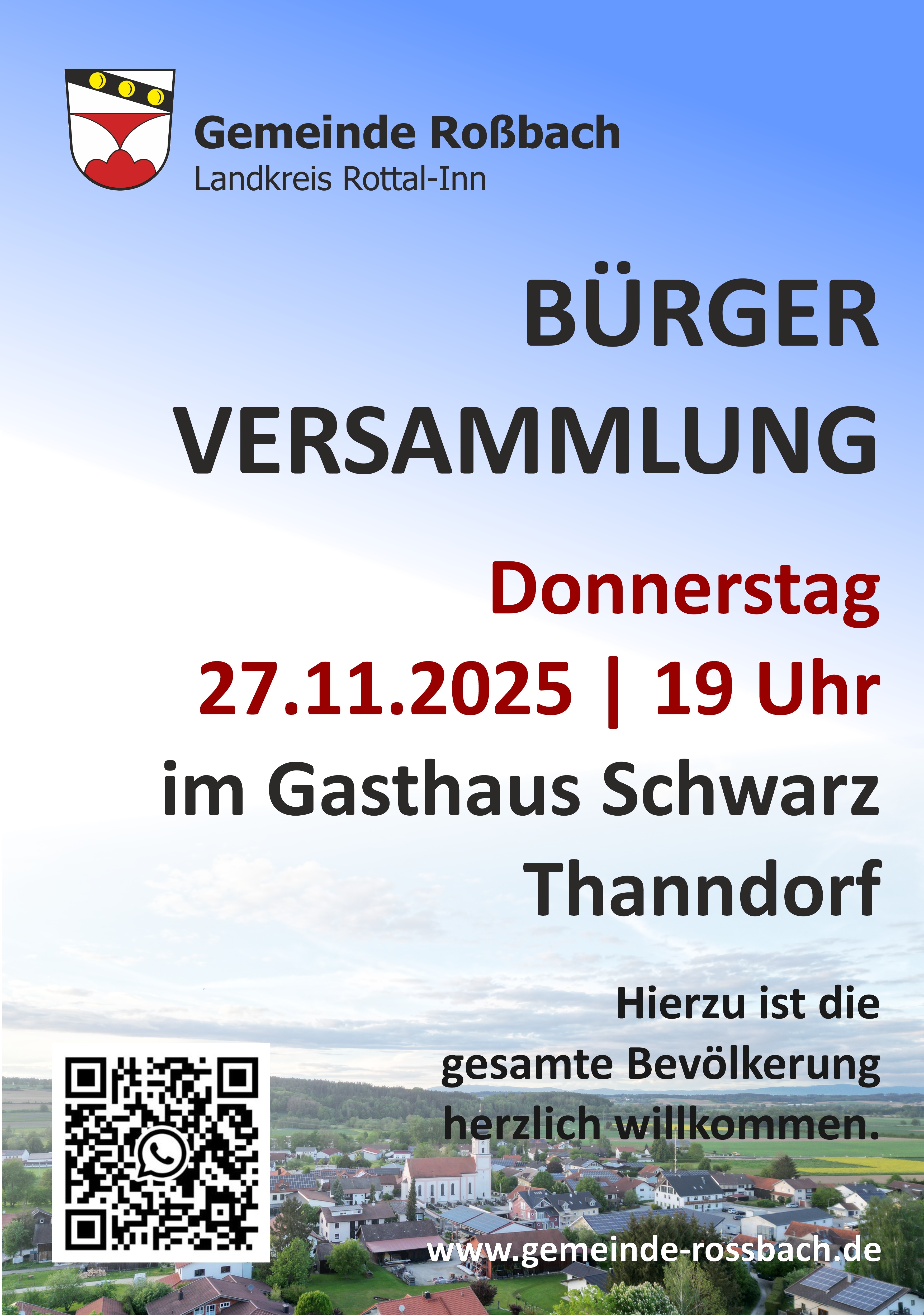 Zur Bürgerversammlung der Gemeinde Roßbach ist die gesamte Bevölkerung herzlich willkommen.