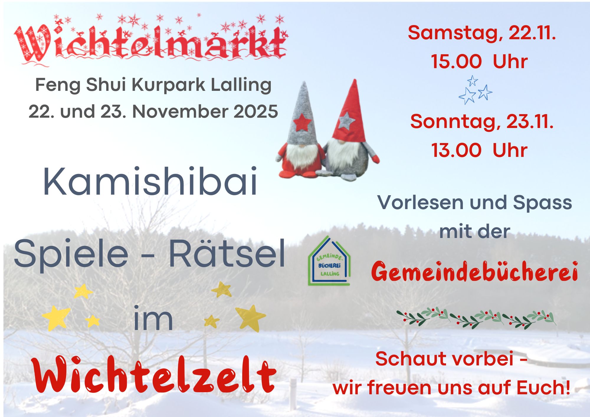 Vorlesen sowie Rätsel und Spiele im Wichtelzelt für Kinder ab 3 Jahren.