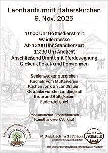 - 10.00 Uhr Hochamt zu Ehren des Hl. Leonhards mit Waidlermesse.