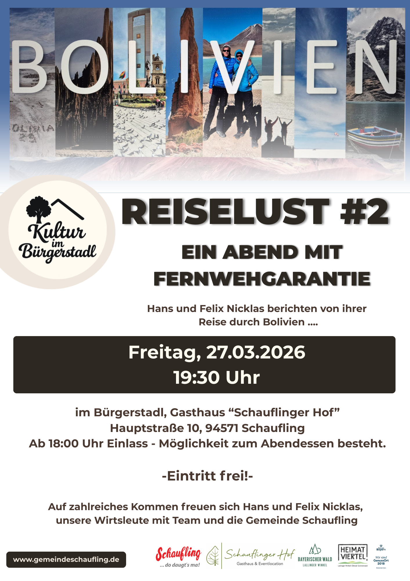 Auf Ihr zahlreiches Kommen freuen sich Hans und Felix Nicklas, unsere Wirtsleute mit Team und die Gemeinde Schaufling.