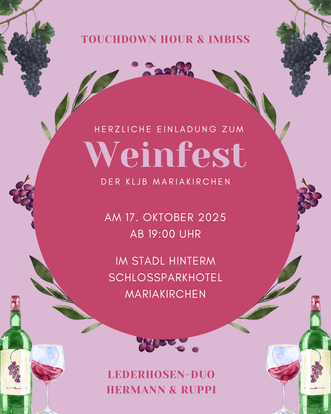 Aufgepasst: am Freitag, den 17. Oktober 2025 is wieda soweit - mia veranstaltet ma unsa alljährliches Weinfest!