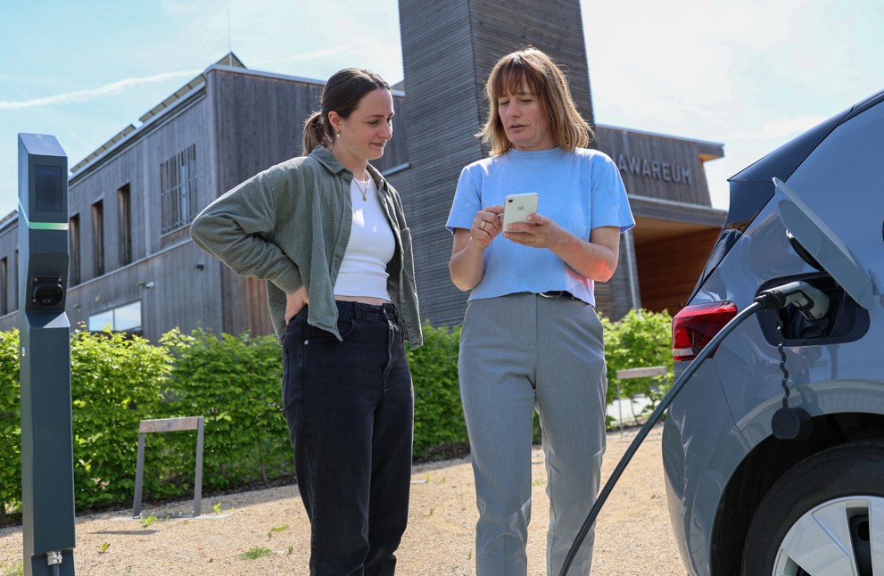 Anschließend wird auf dem Parkplatz ggü. dem Pfarrzentrum an der Ladesäule die Praxis gezeigt.