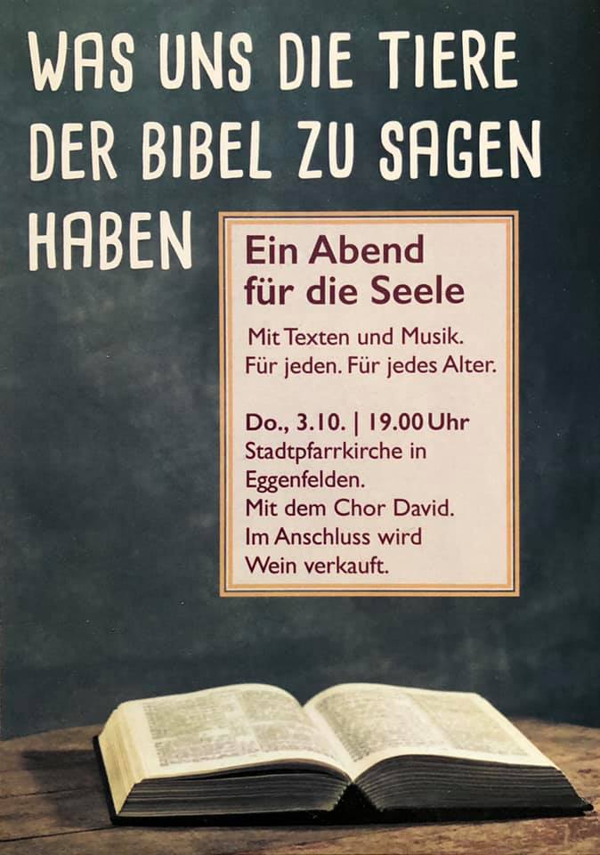 Am 3. Oktober um 19 Uhr findet der alljährliche Abend für die Seele in der Stadtpfarrkirche statt. Unter dem Motto „Was uns die Tiere der Bibel zu sagen haben“ betrachtet Diakon Robert Rembeck gemeinsam mit den Mitgliedern des Treffpunkts Glaube das Thema aus verschiedenen Blickwinkeln. Musikalisch umrahmt wird der Abend wieder von der Gruppe David . „Als wir vor 18 Jahren mit dem Abend für die Seele begonnen haben, hätte keiner gedacht, dass diese Veranstaltung so ein großer Erfolg werden würde“, erzählt Rembeck, „mittlerweile ist unsere Pfarrkirche bei diesem Abend jedes Jahr voll, und es kommen Menschen aus dem ganzen Landkreis.“ Der Kirchenraum soll an diesem Abend anders als in einem klassischen Gottesdienst erfahren werden. Beim diesjährigen Thema fällt eine Besonderheit in den biblischen Texten auf. „Es werden immer wieder Tiere und deren Verhalten erwähnt, um die Beziehung zwischen Gott und Mensch darzustellen. Diese Symbolik prägt unsere Kulturen bis heute“, erklärt Rembeck.