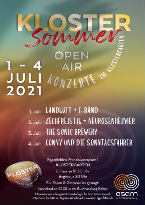 Termin: 3. Juli 2021 im Klostergarten in Eggenfelden