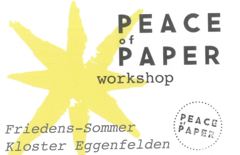 Kreativ-Workshop und Präsentation des Non-Profit Integrationsprojekts PEACE of PAPER während des Friedenssommers des A.S.A.M.-Klostervereins e.V. im Kloster Eggenfelden. Es werden Geschenkpapiere und Karten mit Stempeltechnik gedruckt, die dann verkauft werden. Der Erlös geht an Seawatch, Orienthelfer und die IHA (Intereuropean Human Aid Association) zur Unterstützung von Geflüchteten.
