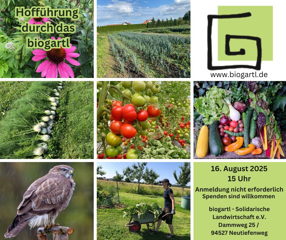 Bei den Hofführungen bietet das biogartl die Gelegenheit, die Arbeit einer Solidarischen Landwirtschaft und die gemeinschaftliche Landwirtschaft im Verein kennenzulernen. Dabei stehen Fragen zum nachhaltigen Gemüsebau, zu Naturschutz und Landwirtschaft, zur Bodenverbesserung und saisonalen Vielfalt auf dem Programm. Dabei gibt es je nach aktueller Bepflanzung immer etwas zu naschen.  Während man normalerweise nicht genau mitbekommt, wie unsere Lebensmittel eigentlich hergestellt werden, bekommt man bei der Hofführung Einblicke in Alternativen zur industriellen Landwirtschaft und entdeckt ungewöhnliche Gemüsesorten wie Kardonen und Schlangen-Zucchini. So kann man sehen, wo das, was wir täglich essen, idealerweise herkommt.