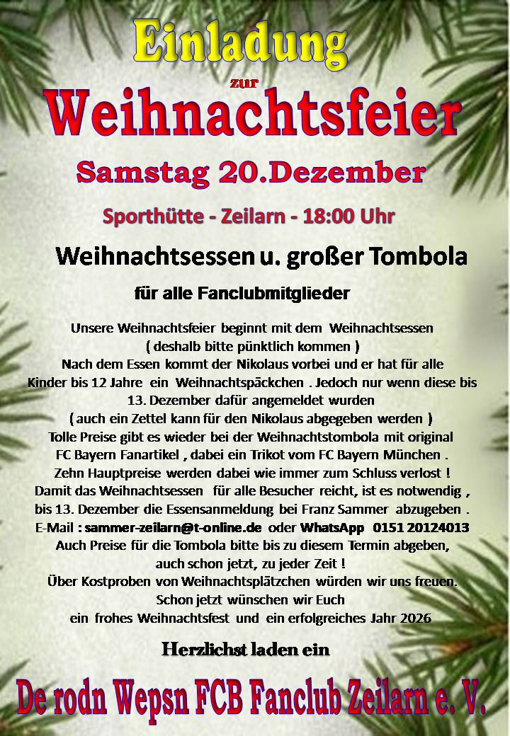 Weihnachtsfeier - De rodn Wepsn FCB Fanclub Zeilarn e.V.