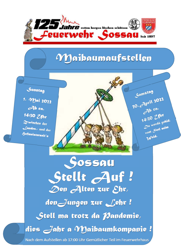 Der Maibaum wird am Sonntag den 01.05. ab 14.00 Uhr aufgestellt.