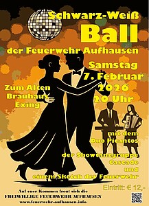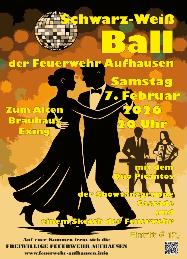 Die Feuerwehr Aufhausen richtet im Jahr 2026 wieder einen Ball aus. Am Samstag, den 7. Februar 2026 ab 20 Uhr wird im Gasthaus Flexeder in Exing wieder das Tanzbein geschwungen. Einlass ist ab 19 Uhr.