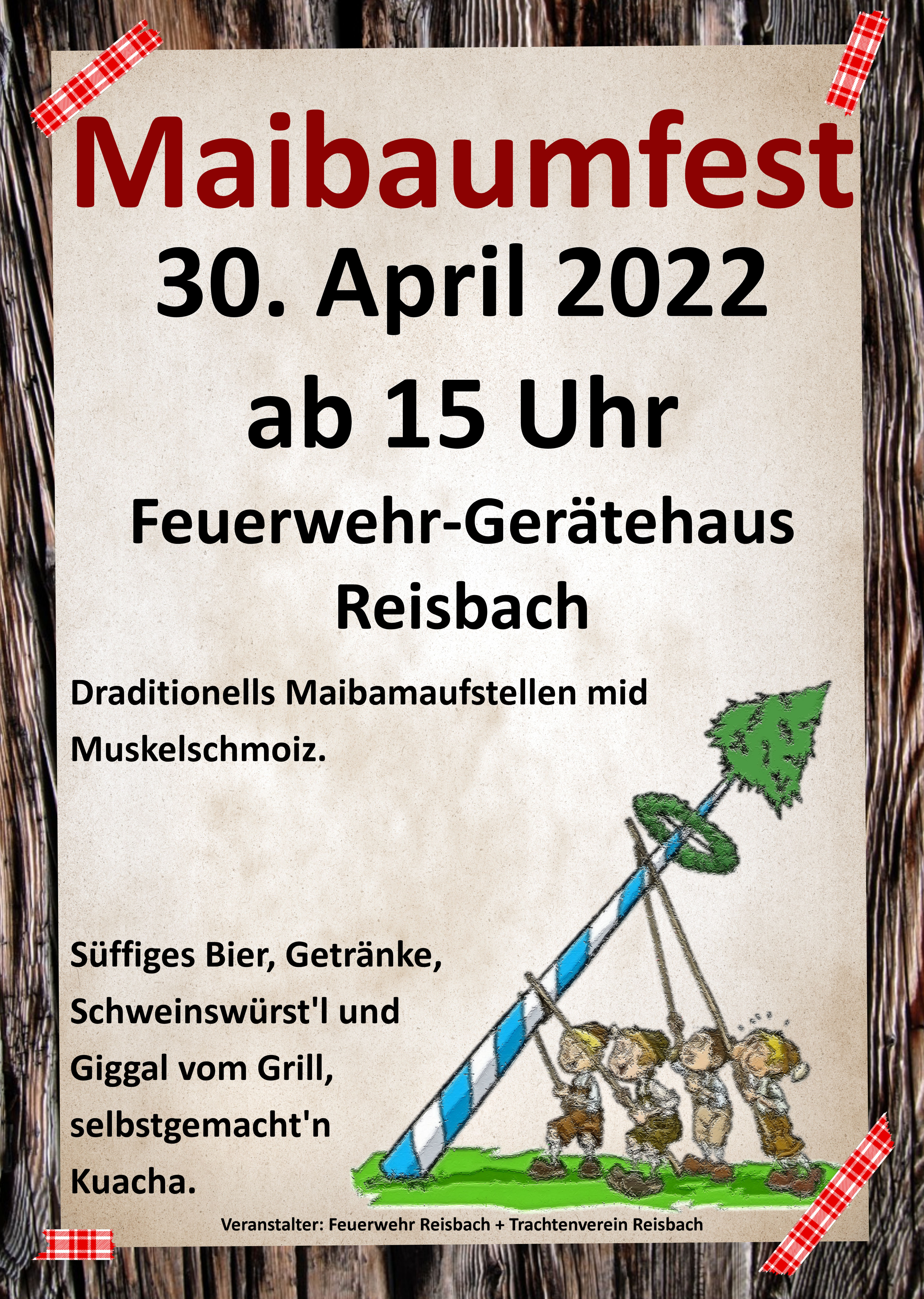 Maibaum Aufstellen des Trachtenvereins und der Feuerwehr Reisbach am Feuerwehr Gerätehaus.