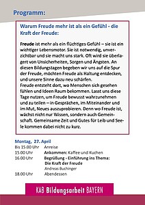 Schriftlich beim KAB-Bildungswerk in der Diözese Passau e. V., Kapellplatz 8, 84503 Altötting, per Mail kab.aoe@bistum- passau.de oder online über www.bildungswerk.kab-passau.de. >>>Wir bestätigen Ihnen die Anmeldung. Bitte erst nach Zahlungs- aufforderung die Teilnehmergebühr auf das Konto KAB-Bildungswerk Passau e. V. überweisen.