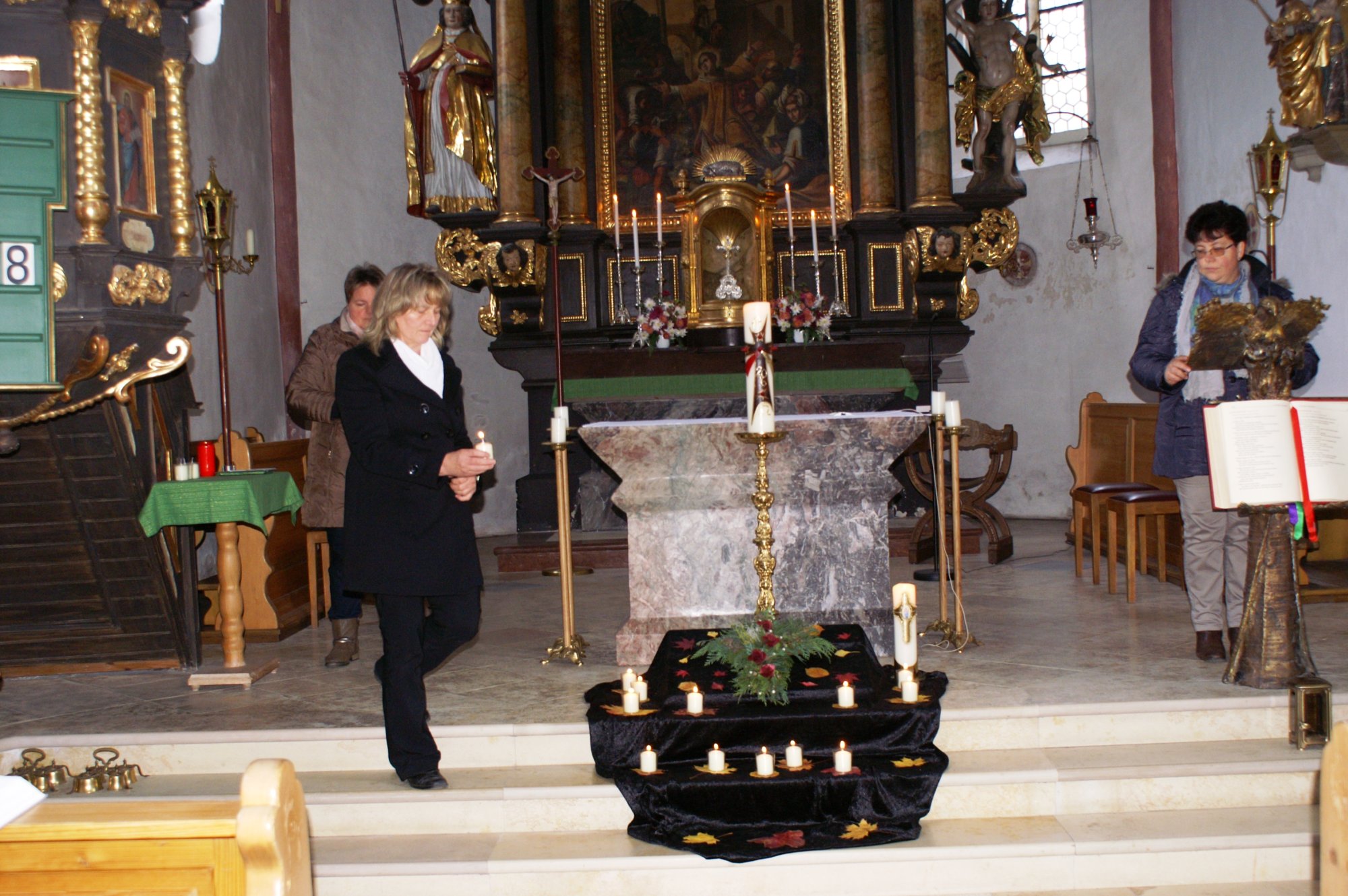 Der Frauenbund lud seine Mitglieder zu einer Gedenkandacht in die Pfarrkirche ein. Rosemarie Asbeck und Hildegard Taubenböck hatten die Andacht vorbereitet und leiteten diese. Sidsel Friedlmeier begleitete mit der Gitarre die ansprechenden Lieder. Vor der Osterkerze war ein Gesteck in Form eines Kreuzes abgelegt und viele bunte Blätter. Elfriede Bachinger verlas die Namen der 14 Mitglieder und eines geistlichen Beirats, die in den letzten 5 Jahren verstorben sind. Für jeden Verstorbenen stellten Johanna Attenberger und Birgit Webersberger eine brennende Kerze auf die gepressten Blätter. Nach der Andacht gingen die Frauen mit dem Gesteck und dem Licht der Osterkerze auf den Friedhof. An zentraler Stelle wurde alles abgelegt und das Frauenbundgebet gesprochen. Mit dem Lied „Möge die Straßen uns zusammenführen“ ging die feierliche Andacht zu Ende. Die Frauen besuchten noch einige Gräber und gingen anschließend in die EC-Halle, wo die Vorstandschaft eine schöne Kaffeetafel aufgebaut hatte. Bei einem schönen Stück Kuchen wurden viele Erinnerungen aufgefrischt. Die gesammelten Sterbebilder der verstorbenen Mitglieder wurden von vielen gerne angeschaut. Elfriede Bachinger bedankte sich mit einem kleinen Präsent bei Frau Taubenböck und Frau Asbeck für die Vorbereitung. Gemütlich klang der Nachmittag aus.