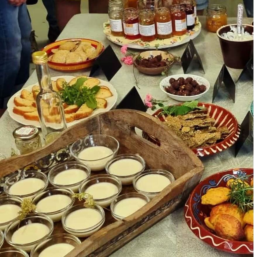 Zum Abschluss konnten sich die Teilnehmer noch an einem Kräuter-Buffet mit durchaus ungewöhnlichen, aber sehr schmackhaften Kreationen wie Gundermann-Chips mit Kakaopulver oder Mädesüß-Creme gütlich tun. Als Durstlöscher stand Blüten-Limonade bereit.