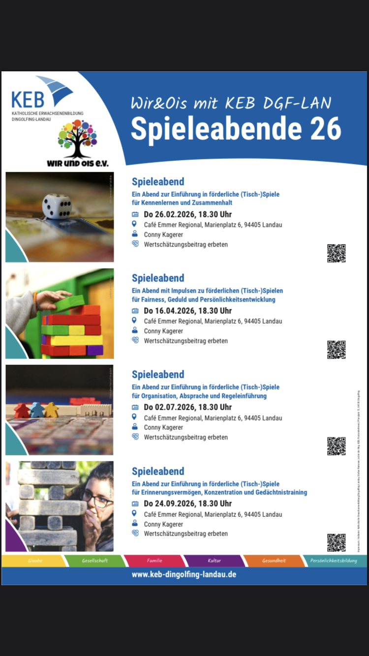 🎲 Spieletreff von der KEB in Zusammenarbeit mit dem Verein Wir und Ois e.V.